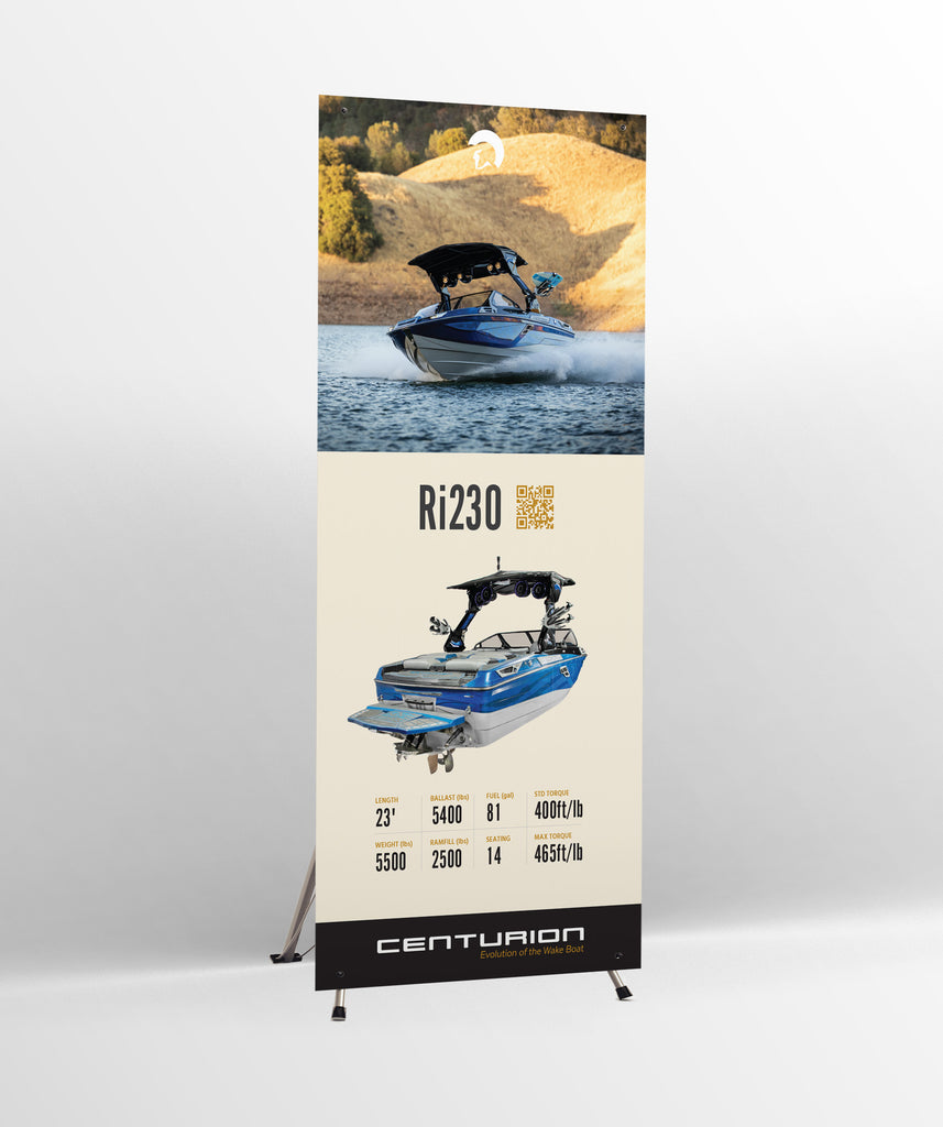 - 31.5" x 72" banner is secured in place with grommets