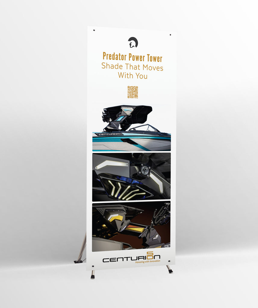 • 31.5" x 72" banner is secured in place with grommets